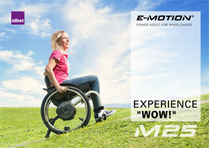 The e-motion is designed to provide a simple solution and provide power assistance for your everyday life. The drive wheels by Alber can combine perfectly with almost any wheelchair using two discrete adapters. While moving, sensors built into the push-rims measure your drive movement and provide you with the desired motor power. The e-motion lets you enjoy independence. It provides you that extra boost you need to conquer each day, including the extraordinary things in life, on your own. With a support speed of up to 8.5 km/h* and a range of up to 25 km, you can reach your destination with ease and minimal strain. Thanks to the built-in lithium-ion batteries, you no longer have to worry about recharging in between journeys and can enjoy your independence to the full. What about freedom? Whether it's longer distances, slopes or a few kilos more in your luggage, e-motion supports you in every situation, even when braking downhill. With e-motion, you can expand your range of action, keep moving, and train your vital functions. At the same time, you permanently protect your muscles and joints from overwork. The optionally available ECS remote control allows you to switch the e-motion drive wheels on and off easily from your seat, and switch between two different assistance levels to suit both indoor and outdoor use. In addition the ECS allows to activate the patented hill holder function that prevents the wheelchair from rolling away on slopes. The e-motion also features a free Mobility App, which provides users with several preset driving profiles and other features such as battery indication and current speed. Moreover the optional Mobility Plus Package allows to increase the maximum speed and to use an innovative Cruise Mode that keeps a permanent speed on a single push. |