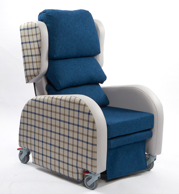 The Alpha Plus is a supportive chair that reclines from a pivot point behind the knee. This reclining seat is controlled by a smooth powerful gas spring which allows infinite positioning and a steep seat rake if necessary. It promotes a sense of security and relaxation. The chair has adjustable seat depth and comes in 3 different widths. The chair seat cushion comes with visco pressure relieving foam as standard. The cushion materials are 4 way stretch vapour permeable fabric which is washable up to 95 C. The use of VP fabrics enables the chair to be optionally upgraded with different pressure relieving cushions. |