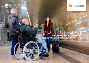 With the Empulse R20 powerpack it has never been so easy to support the attendant pushing the wheelchair. With a 4.5kg total transport weight and unique folding function, the R20 is ideal for storage and transport, without having to compromise on performance and durability. The R20 is also incredibly easy to use, with a push to go control, two peg mounting and easy to read display. The R20 is the only powerpack on the market that can be folded with the wheelchair. This unique feature means you no longer have to connect and disconnect every time you transport or store the wheelchair. The light weight of the R20 and the stylish backpack allows easy handling, easy transport & also easy adaptation to nearly any wheelchair. Despite it's lightweight nature and compact appearance, there is no compromise on performance. The R20 can achieve a 9 mile range, as well as having the ability to climb 5cm kerbs and 10 degree slopes. It will also cater for users up to 170kg in weight (190kg total including the wheelchair), which means the R20 is a product that works for all. |