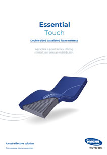 The Essential Touch mattress is a pressure redistributing support surface for the community, residential and community healthcare environment. Featuring square castellations, it provides better pressure distribution than mattresses with full width castellations, and further facilitates immersion and envelopment. It also manages shear and friction forces better across the width and length of the medical mattress, whilst reducing moisture and by controlling the build-up of heat. Essential Touch medical mattress provides comfort and pressure redistribution, meeting the needs of individuals at risk or high risk of developing pressure injuries. With its double-sided castellations, the mattress can be flipped inside the cover, providing additional longevity, and a more cost-effective solution. The breathable water-resistant cover provides a vapor-permeable, multi-stretch surface, to promote patient comfort, contribute to skin integrity and facilitate the immersion and envelopment properties of the Essential Touch. Nursing care is pivotal in pressure injury prevention. The Essential Touch mattress will positively contribute to the outcome when combined with an individual and comprehensive pressure injury protocol. A range of assessment scales can be used as a formal method of assessing risk from pressure injury development and should be used in conjunction with an informal assessment (informed nursing judgement). Informal assessment is of greater importance and clinical value. Essential Touch medical bed mattress is one of three models in the Essential range of support surfaces, providing a pressure redistribution, exceptional comfort, pressure reduction and value for money. |