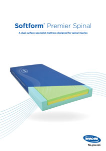 Softform Premier Spinal mattress is packed with exciting features that deliver an exceptional level of comfort, pressure redistribution, among other numerous functions. It is specifically a replacement mattress designed for those with spinal conditions or injury. The Softform Premier Spinal is suitable for those considered at ‘Very High Risk’ of developing pressure ulcers. It provides optional support to cover a wide range of comfort and spinal alignment requirements. The Softform Premier Spinal mattress comes with a dual interface option. This provides a tailored solution without the need to change to an alternative softform mattress. The interface foam can be quickly changed at the bedside to reduce the risk of waiting time for the patient and limit the need for lengthy transfer. The foam sits level with firm side supports and promotes effective patient care, handling and transfer, without compromising the spinal alignment or pressure redistribution. The Invacare Softform Premier Spinal features a unique dual foam insert that provides a choice of two stable support surfaces with excellent comfort abilities. The choice of which is specific to each user shear reduction and pressure redistribution is addressed with either surface. The design of the mattress allows for excellent conformity if profiled on electric bed frames. |