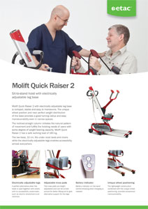 The inclined straight column imitates the natural pattern of movement and fullfils the hoisting needs of users with some degree of weight bearing capacity. Molift Quick Raiser 2 has a safe working load of 160 kg (352 lbs).