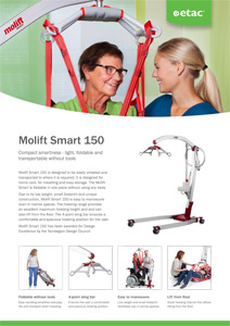 Light, foldable and transportable without tools Low weight and unique construction Comfortable and safe transfer Molift Smart 150 has been awarded for Design Excellence by the Norwegian Design Council. |