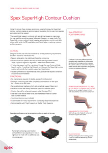 Using the proven Spex strategic positioning base technology, the SuperHigh contour cushion creates an optimum pelvic foundation for the user that requires extra pelvic and hip immersion.